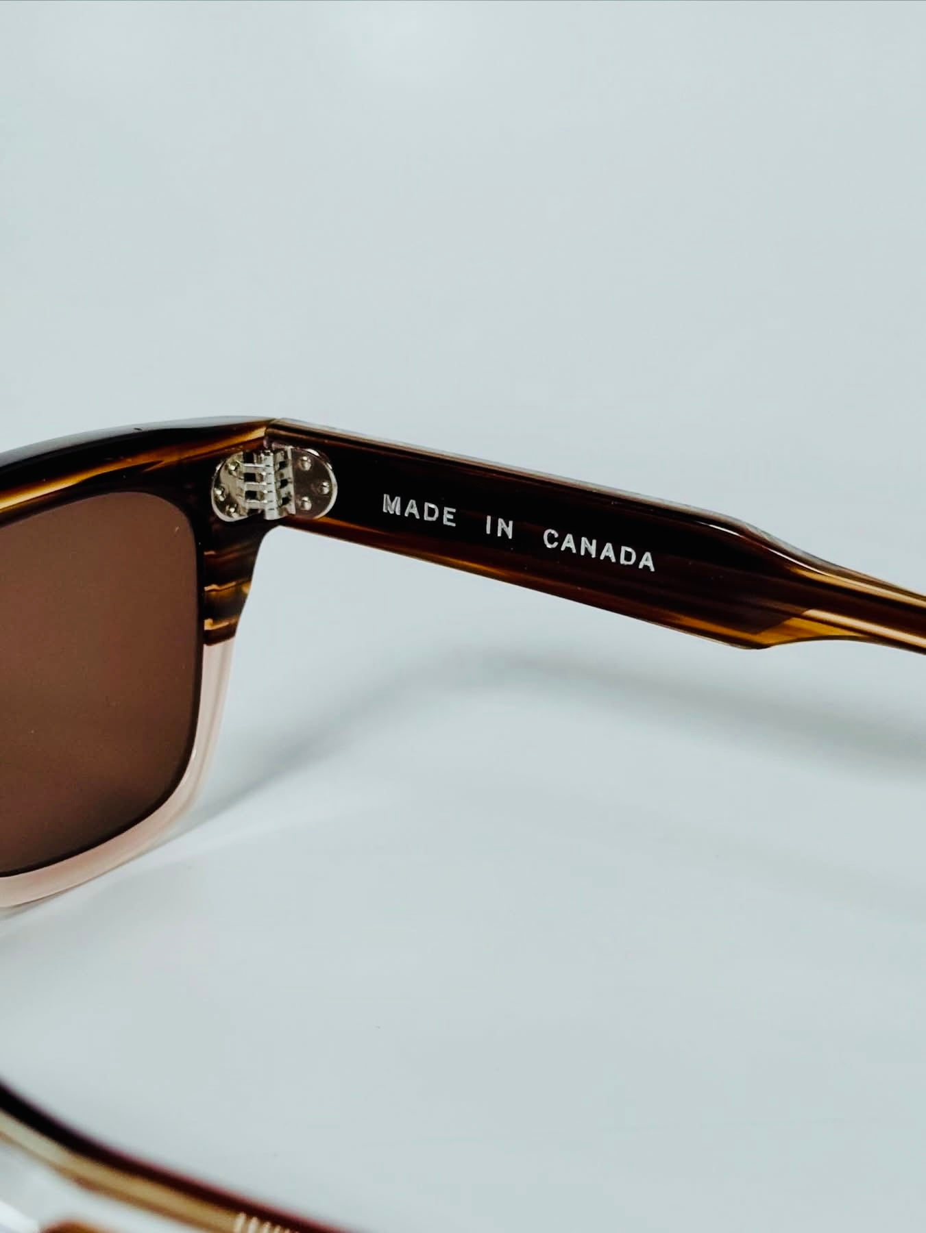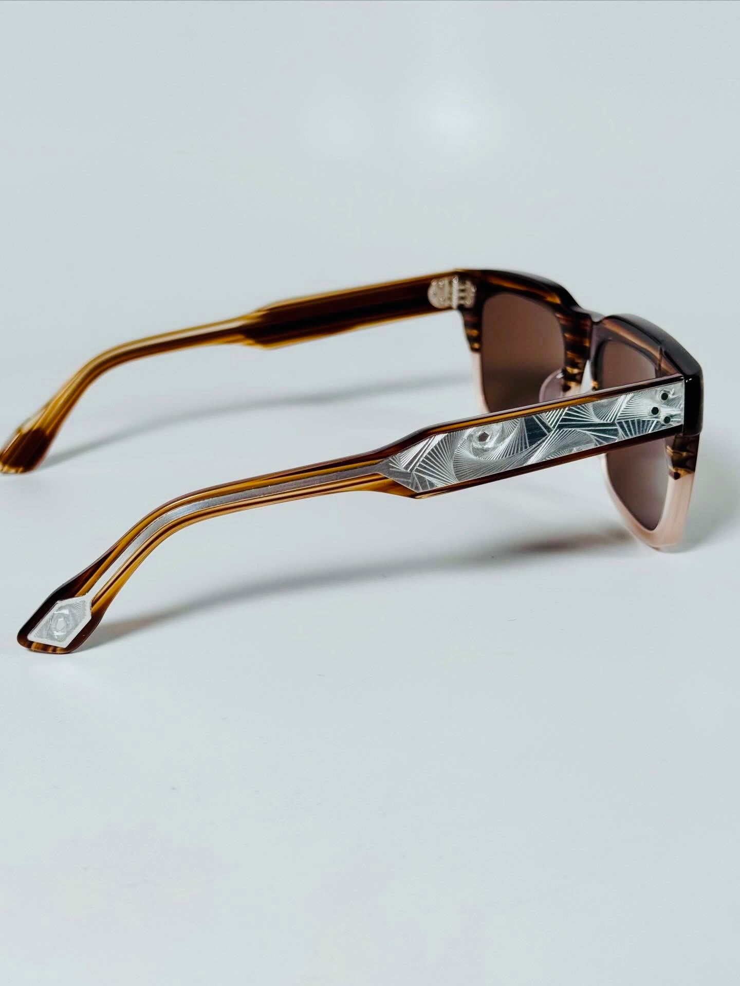 Made entirely from Takiron‑Rowland’s world‑class Japanese acetate and brought to a super‑fine hand polish, it features our in‑house manufactured triple‑laminated temple arms engraved with our signature spiral motif, paired with 7‑barrel hand‑riveted OBE German hinges for exceptional durability and feel.